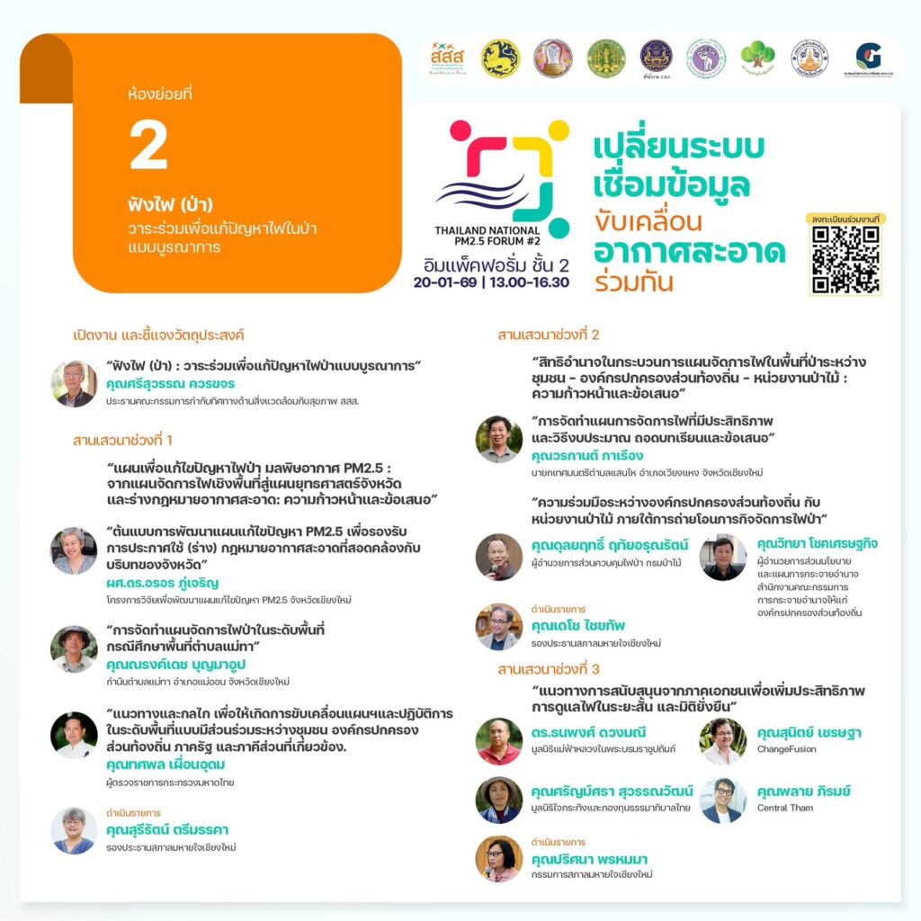 เมื่อคำตอบของการแก้ไขปัญหาไฟป่า ไม่สามารถอยู่ที่มือรัฐเพียงอย่างเดียว แต่ภาคส่วนอื่น ๆ อย่างภาคเอกชนก็อาจร่วมตอบคำถามหรือแก้ไขปัญหานี้ได้เช่นกัน เมื่อวันที่ 20 มกราคม 2569 ที่ผ่านมาจึงได้มีการจัดเวทีเสวนาในงาน Thailand National PM2.5 Forum ครั้งที่ 2 ชวนมาร่วมฟัง–ถก–ขบคิด เพื่อคืนอากาศสะอาดให้คนไทย โดยห้องย่อยที่ 2 ฟังไฟ (ป่า) วาระร่วมเพื่อแก้ปัญหาไฟป่าแบบบูรณาการ ในช่วงที่ 3 จะเป็นการชวนภาคเอกชน-มูลนิธิ ถกแนวทางสนับสนุนชุมชนจัดการไฟระยะสั้นและยาว ชี้รากปัญหาฝุ่นควันอยู่ที่โครงสร้างเศรษฐกิจ ไม่ใช่ชาวบ้านเผาเพราะอยากเผา ในหัวข้อ “แนวทางการสนับสนุนจากภาคเอกชนเพื่อเพิ่มประสิทธิภาพการดูแลไฟในระยะสั้น และมิติยั่งยืน”